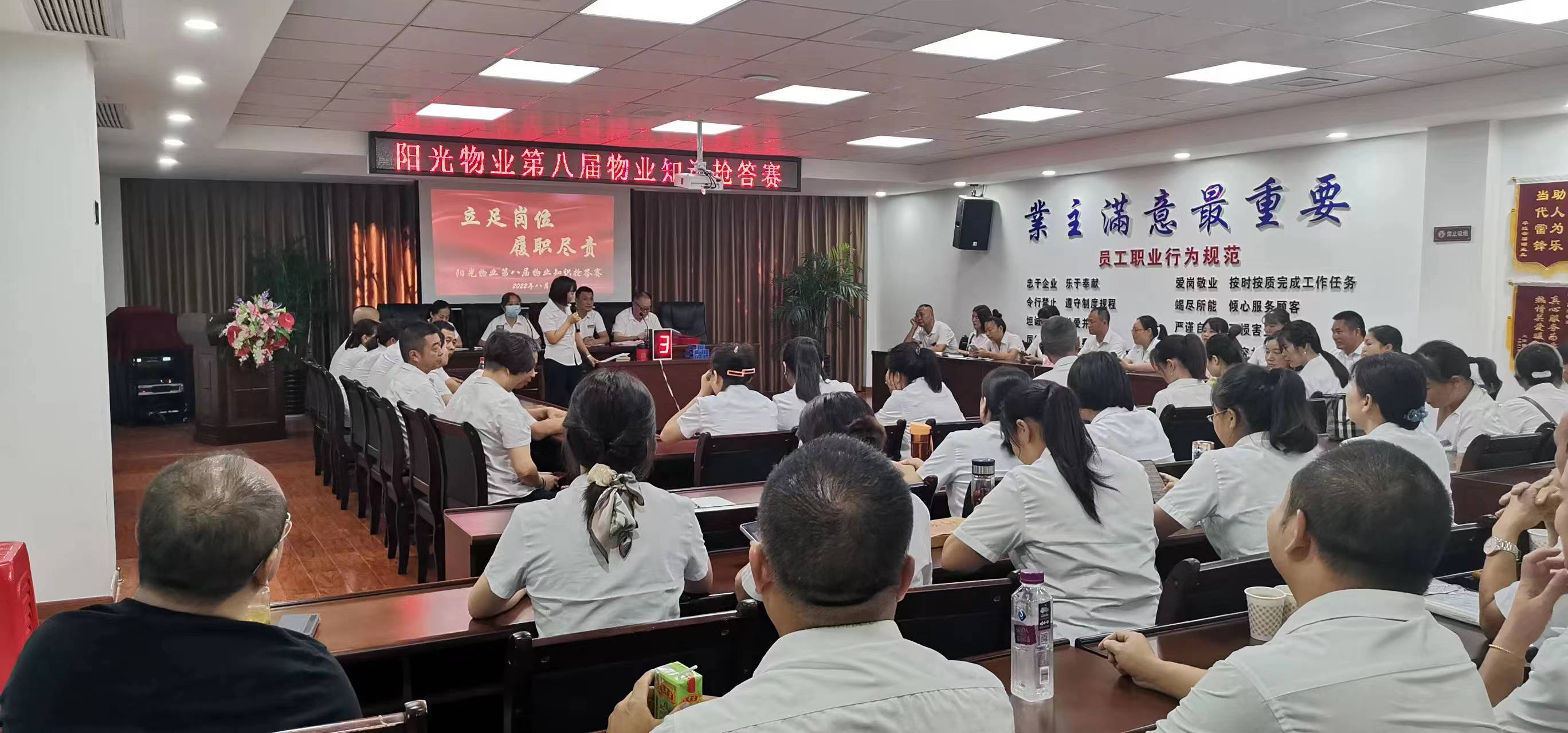8月13日上午,陽光物業(yè)公司總部會(huì)議室傳來一陣陣熱烈的掌聲,“閉路監(jiān)控鏡頭應(yīng)根據(jù)哪些部位進(jìn)行區(qū)分?設(shè)備房每平方米需要多大的亮度?房屋的建筑主體具體包括哪些部位?”這是陽光物業(yè)、沁園春物業(yè)的全體管理人員在開展“立足崗位、履職盡責(zé)”物業(yè)管理知識(shí)搶答賽活動(dòng)。
